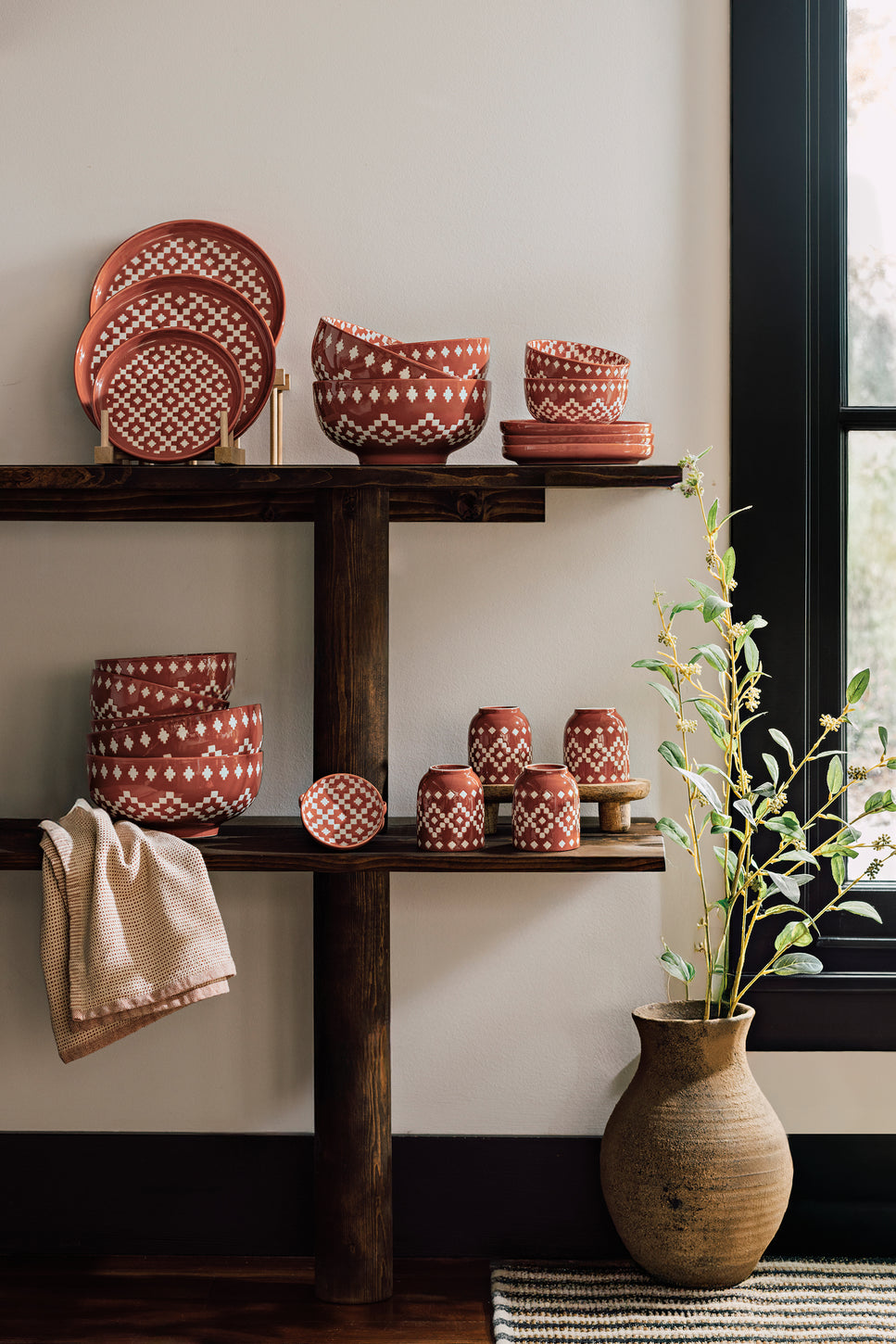 Using traditional Turkish techniques, each piece in our Evani collection begins with a hand-drawn pencil, brush, or sponge pattern template. Once the pattern details are drawn, color is applied by brush. Some designs call for a scraping technique that creates an irresistible textured surface. Each piece gets a final retouch before the final step of glazing. Emerging from the glazing oven are plates, bowls, and serveware that embody the incomparable beauty of hand-painting