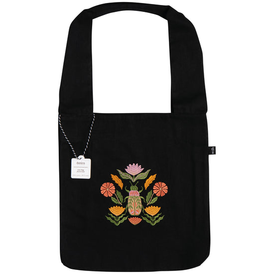 Step into whatever the day brings feeling inspired, empowered and protected when you're carrying this Amulet To and Fro Tote Bag. Vibrantly colored creatures and floral symbols pop against the rich black canvas, putting serendipity, synchronicity and a little luck on your side.