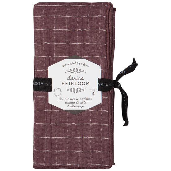 Soft to the touch, perfectly plush double-weave napkins combine enduring style and functionality. Pre-washed cotton makes them extra soft. These two-toned napkins have unbleached cotton on the reverse. Part of the Medley collection of color-coordinated kitchen and table linens from Danica Heirloom.