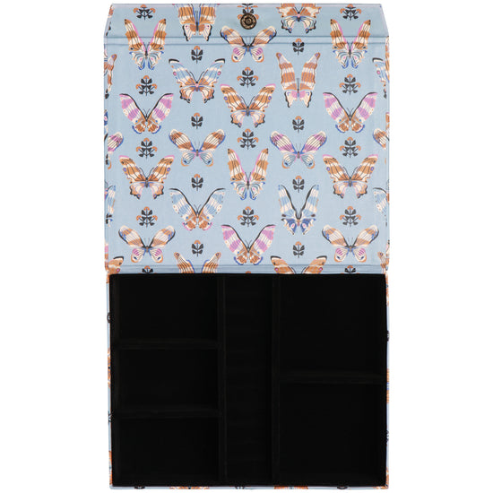 Hoops, strands, rings, and other tiny treasures are safe and sound inside our new Aurora jewelry box. Printed with a Danica Studio design, this sturdy and secure box adds a layer to your self-expression and style. Spring dawns and a sunrise of color graces the butterflies wings in the Aurora collection.