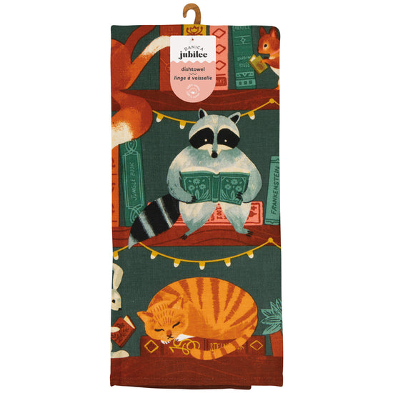 Add life and character to your kitchen with our fun and colorful printed Book Club woven cotton dishtowel. A perfect combination of form and function, this towel will make washing up less of a chore. Join these lit-loving creatures in their snuggly nook, curl up in a chair, and enjoy a good book.