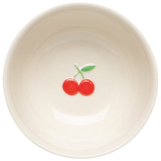 A fresh style and retro flair is at the core of our Petite Motif Cherry bowl, where a fruity icon adds effortless taste to the table. Fresh, fun, and chic—the Petite Motif collection keeps it simple with a bold embossed fruit design on a sleek ivory base and clear glass, adding a just-ripe touch to any table.