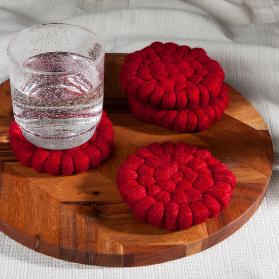 Chili Wool Felt Ball Coasters Set of 4