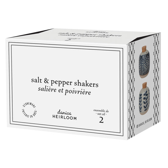 Impress your guests with this sophisticated salt and pepper set, part of the Element Collection of coordinating mugs, bowls, and serve ware from Danica Heirloom.