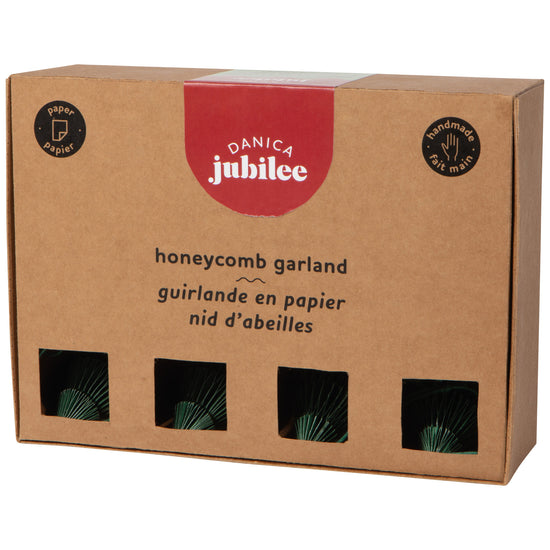 Our handcrafted honeycomb Evergreen garland will fill the holiday home with lighthearted allure. Made with recycled paper, each Christmas garland folds up neatly for storage to be enjoyed year after year.