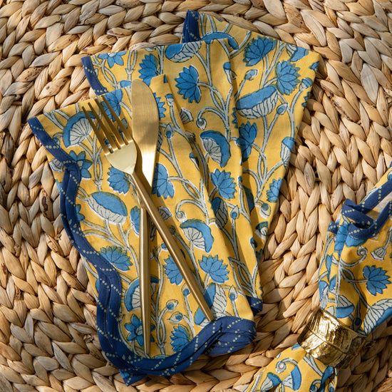 Fan Flower Block Print Napkins Set of 4