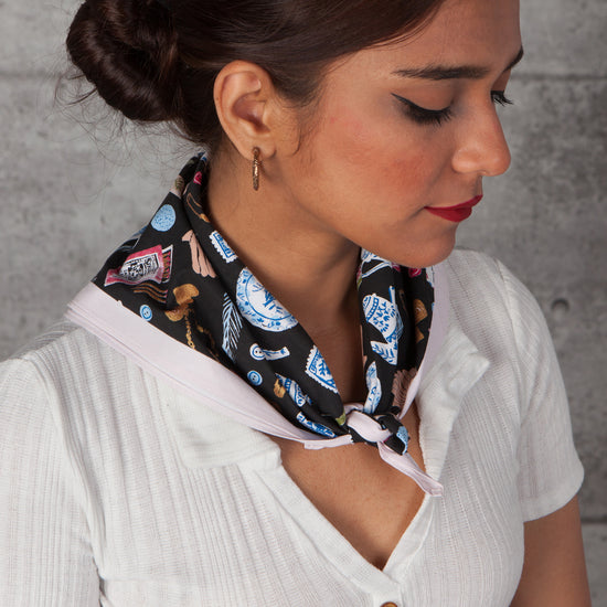 Adorned with our Danica Studio prints, these silky soft bandanas are a unique and versatile complement to your wardrobe. Wear around your neck, on your wrist or tie one to your tote to create your own signature style.