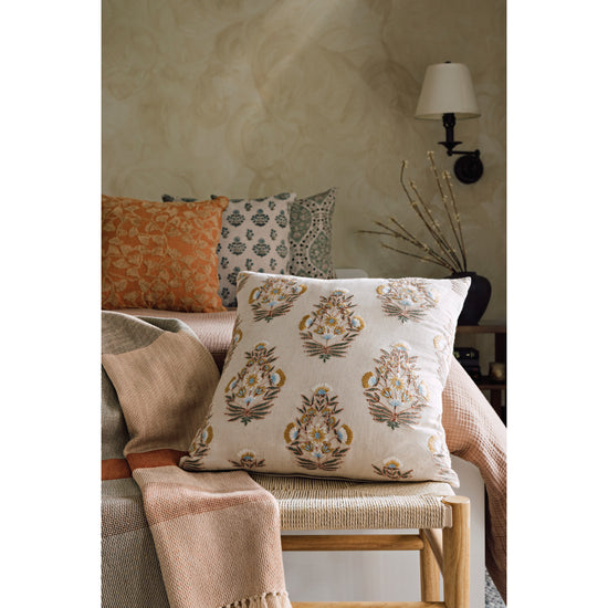 A curated expansion of our home decor offerings, our Ginkgo pillow celebrates artistry and intention with every stitch. Embellished details and a block-print design offers a striking departure from the ordinary.
