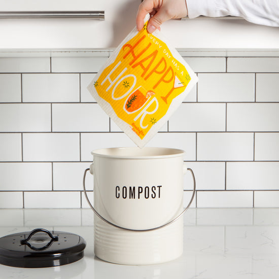 Breeze through everyday kitchen tasks with this Ecologie Swedish dishcloth. With sun-drenched colors and a message to make you smile, this dishcloth will impress you with its effortless ability to handle liquids. Made from FSC-certified plant-based cellulose fibers and cotton, this 100% natural, nontoxic and compostable sponge cloth is a household staple in Scandinavia. Sourced from authentic Swedish manufacturers, each thin cloth expands to become soft and pliable when wet and holds 15 times its weight in water or liquids, making it highly absorbent and useful when washing dishes or cleaning up spills. Leave paper towels off your shopping list and switch to this reusable alternative. This versatile dishcloth can wipe counters and quickly soak up wet messes in the kitchen, but it's also ultrapractical for cleaning tasks all around the home. Use it with almost any cleaning product to wipe mirrors or spotty faucets in the bathroom, leaving a streak-free finish. Its lint-free design makes it a must-have for any household.