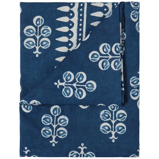 Infused with the irreplaceable liveliness of handmade, the Hawthorn block print tablecloth brings warmth and vitality to your next gathering. Hand block-printing holds a long and rich history in Indian textiles. It’s a skilled craft, shared generation to generation. Each handcarved wooden block is stamped in ink and applied with expertise to the fabric creating complex, interconnected patterns. Awash in indigo and punctuated with white, this design refreshs a timeless color combination that perfectly fits the contemporary home.