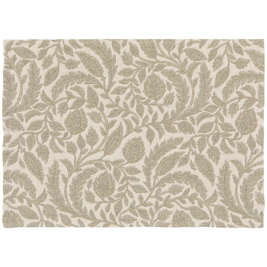 Our Topiary Herbal woven placemat with its embroidered leafy pattern evokes elegantly designed gardens, enhancing the dining table with a sense of sophistication.