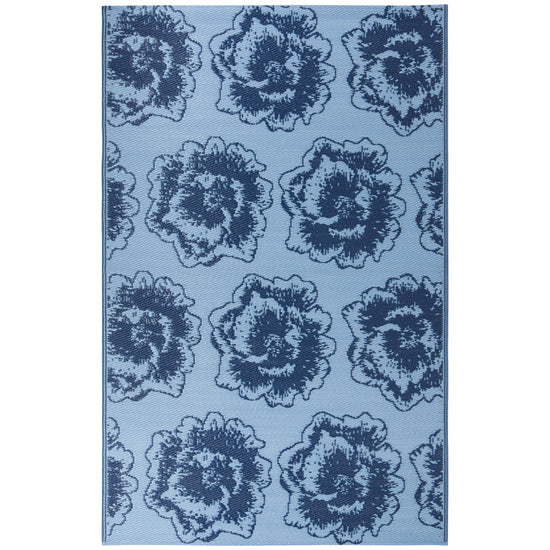 Bring the dynamic power of petaled blue flowers to any area with this 4 x 6 Juliette outdoor rug by Now Design. Our lightweight outdoor rugs are ideal for patio sitting spaces or walkways, and they're perfect for inside use as well.