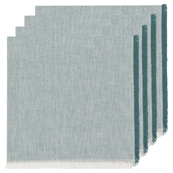 Chambray weaves color with white, resulting in muted, soft variations of favorite shades. Raw edges spotlight the technique in two-color fringes that bring a textural sophistication to your meal.