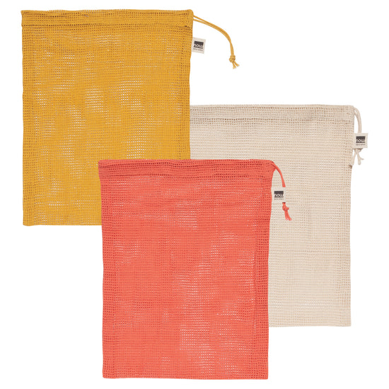 Celebrate the magic of the tropics with the Coral Le Marche Set of Produce Bags from Now Designs. Warm shades of apricot, golden yellow and ivory add vibrant color to your trips to the market.