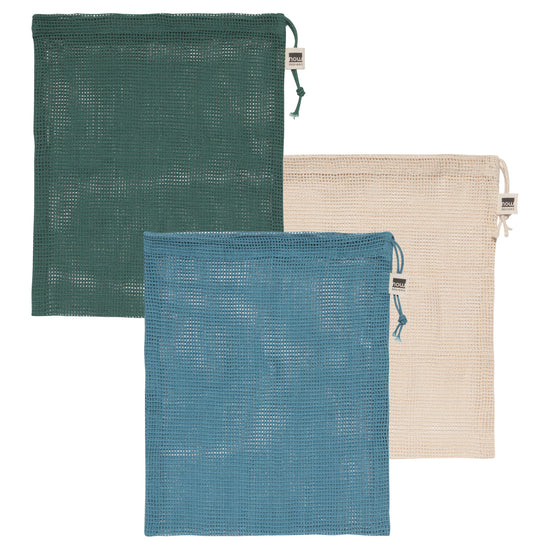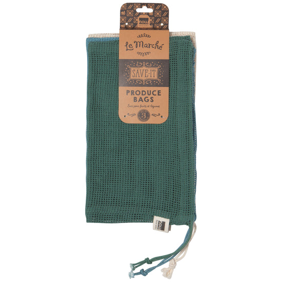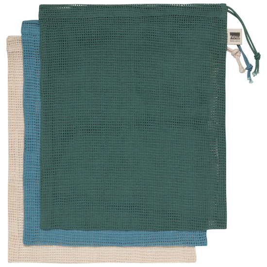 Derive inspiration from the colors of nature with this set of 3 Pine Le Marche Produce Bags by Now Designs. The trio of forest green, cornflower blue and soft beige shopping essentials help you live a more eco-friendly lifestyle.