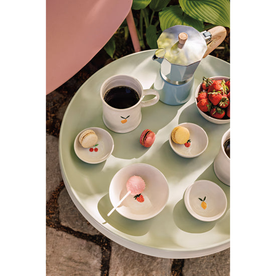 Fresh style and retro flair are at the core of our Petite Lemon Motif bowl, where a fruity icon adds an effortless taste to the table. Fresh, fun, and chic—the Petite Motif collection keeps it simple with a bold embossed fruit design on sleek ivory base and clear glass, adding a just-ripe touch to any table.