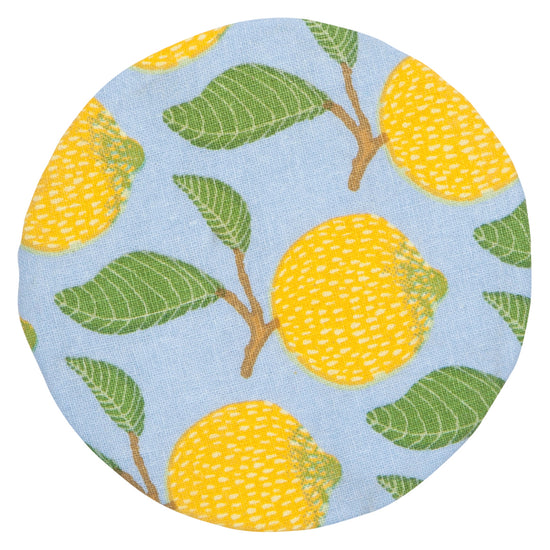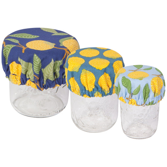Move away from plastic with this set of three Lemons Mini Bowl Covers by Now Designs. The bright yellow lemons set against a blue background livens up leftovers while also keeping them fresh.