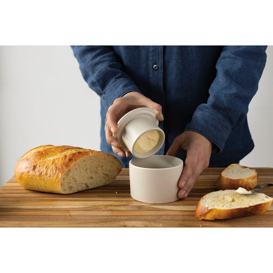 Keep your kitchen countertop looking clean and organized with this Matte Natural Butter Crock by Now Designs. Swap out your butter dish for this contemporary yet classic French country crock, and you'll always have spreadable butter at the ready. Made from thick stoneware, the butter crock uses a tried-and-true storage method dating back to the 1800s to keep butter fresh and soft.