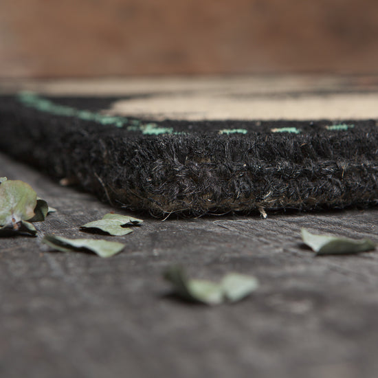 Danica Studio doormats are made from coir fiber, harvested from fertilizer- and pesticide-free palm trees with limited water requirements in Kerala, India. Our manufacturer has reduced fresh water consumption by 50% through reverse osmosis water treatment and its rain water collection system, the largest in Kerala. The coir and jute fiber waste is reused for biodegradable garden items.