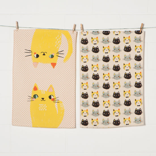 Curious cats with cheeky expressions and vibrant colors create a playful yet practical design ideal for eccentric kitchen schemes on these Meow Meow Printed Woven Dishtowels by Danica Studio. These printed dishtowel sets are a duet of complementary designs that help complete the look of your kitchen with distinctive style. Perfect for presentation to friends and family, these hand towels make a thoughtful housewarming, wedding or hostess gift. The diverse illustrations in an array of colors and design elements make it easy to pick out patterns that suit you or a gift recipient. Noteworthy prints created by our designers in the Vancouver, Canada studio range from beautiful birds and whimsical animals to geometric shapes and motivational designs, ensuring this two-piece dishtowel set enlivens your daily routine while showcasing your individual character.