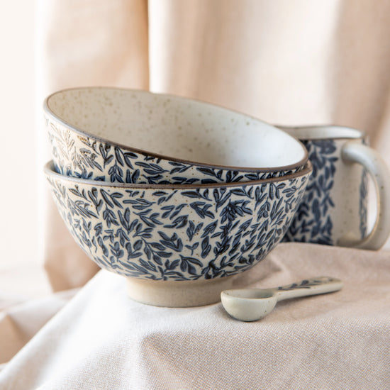 Serve dips, soups, snacks and more in this hand painted Myrtle bowl. A natural background allows the pattern to move across the surface. Capture the essence of water, air, earth, and fire with this bowl from the Element collection that soothes, revives, grounds and ignites—awakening our natural connection to the elements.