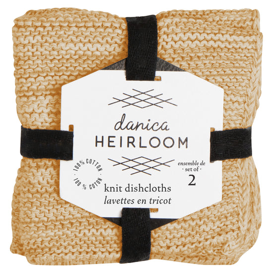 Sets of two dishcloths are soft on the hands yet tough on dirty dishes. Knit by hand with heathered cotton yarns. Part of the medley collection of color-coordinated kitchen and table linens from Danica heirloom.