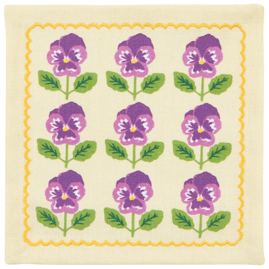Our fun and fresh 6" Pansy cocktail napkins are perfect for slipping under a bubbling champagne flute or a sparkling crystal coupe. Either way, these spirited cocktail napkins have the celebration covered. Welcome spring with Pansy! Playful blooms, stalky stems, and a burst of purple, yellow, and green celebrate the hearty flowers that lead the way into a fresh, new season.