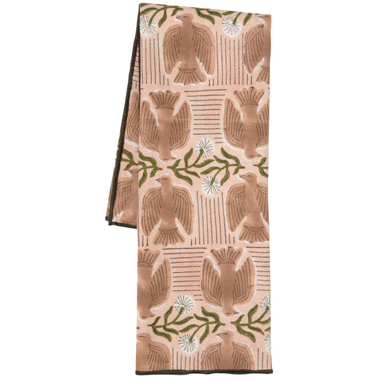 Block-printed by hand with a custom design, our updated cotton Peregrine dishtowel offers enhanced quality, function, and softness. Artisanal craftsmanship meets everyday utility, bringing beauty and improved performance to any kitchen. Peregrine's majestic birds of prey bring natural elegance to your home. With earthy tones and organic textures, this collection captures the splendor of powerful wings soaring over fields of wild blooms—elevating everyday moments with bold yet graceful beauty.