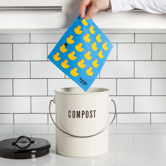 Breeze through everyday kitchen tasks with this Ecologie Swedish dishcloth. You'll go quackers for the playful and nostalgic helpers that make every tidying and drying effort a blast from childhood bath times past. Made from FSC-certified plant-based cellulose fibers and cotton, this 100% natural, nontoxic and compostable sponge cloth is a household staple in Scandinavia. Sourced from authentic Swedish manufacturers, each thin cloth expands to become soft and pliable when wet and holds 15 times its weight in water or liquids, making it highly absorbent and useful when washing dishes or cleaning up spills. Leave paper towels off your shopping list and switch to this reusable alternative. This versatile dishcloth can wipe counters and quickly soak up wet messes in the kitchen, but it's also ultrapractical for cleaning tasks all around the home. Use it with almost any cleaning product to wipe mirrors or spotty faucets in the bathroom, leaving a streak-free finish. Its lint-free design makes it a joy to use.