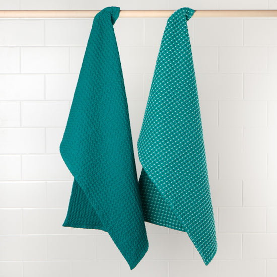 Made of GRS-certified cotton polyester blend threads, these dishtowels put a fresh spin on creating a clean kitchen.
