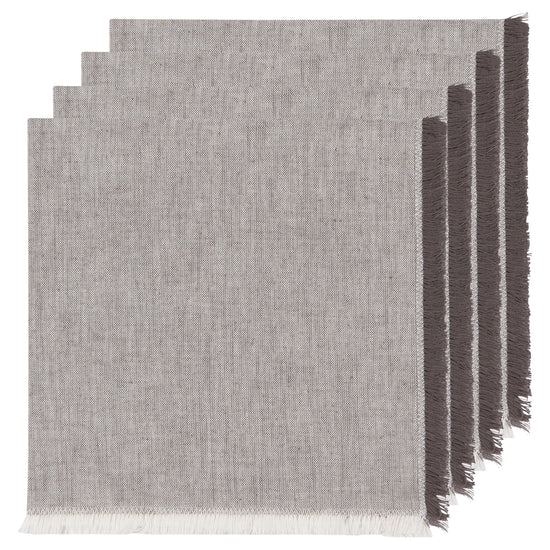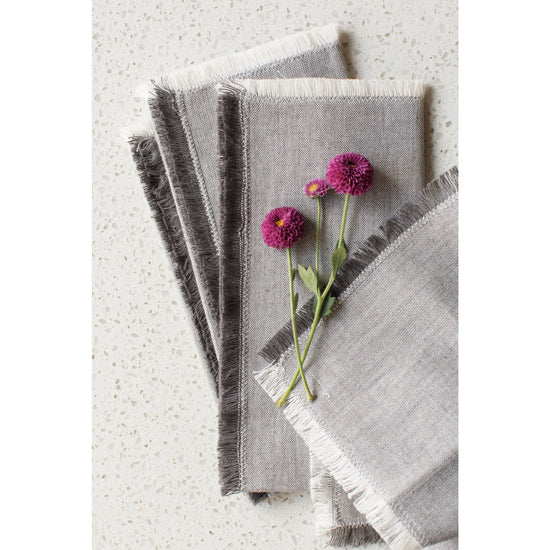 Chambray weaves color with white, resulting in muted, soft variations of favorite shades. Raw edges spotlight the technique in two-color fringes that bring a textural sophistication to your meal.