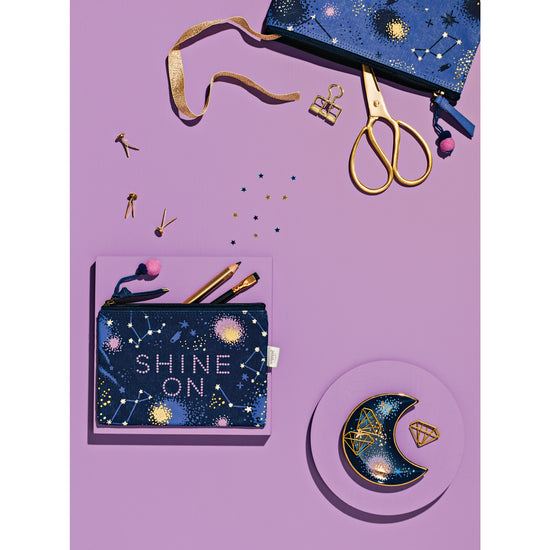 A zippy sidekick to place all your on-the-go essentials! Two perfect sizes to slip into your purse or tote and zip pulls to keep everything in place. Made from recycled cotton. Our recycled fabric is made by taking yarns that are swept off the floor during manufacturing. The yarns are first sorted by color, then run through a machine that shreds them into raw fiber. This fiber is spun into new-again yarns. Recycled cotton prevents additional textile waste and requires fewer resources than conventional cotton.
