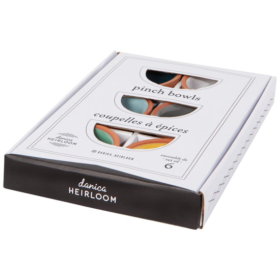 Keep salt, spices, and nuts at the ready with a set of six terracotta pinch bowls with contrasting glossy shades of soft pastels and rich hues.