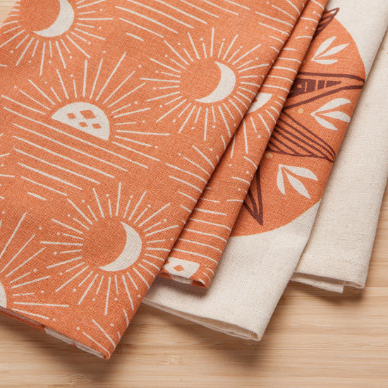 Welcoming rays and warm smiles grace this pack of two Soleil Printed Woven Dishtowels by Danica Studio. These printed dishtowel sets are a duet of complementary designs that help complete the look of your kitchen with distinctive style. Perfect for presentation to friends and family, these hand towels make a thoughtful housewarming, wedding or hostess gift. The diverse illustrations in an array of colors and design elements make it easy to pick out patterns that suit you or a gift recipient. Noteworthy prints created by our designers in the Vancouver, Canada studio range from beautiful birds and whimsical animals to geometric shapes and motivational designs, ensuring this two-piece dishtowel set enlivens your daily routine while showcasing your individual character.