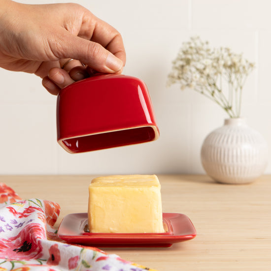 Infuse vibrant color into your kitchen with this Square Red Butter Dish from Now Designs. The classic design and striking color ensure it's a standout accessory on your countertop or island. When keeping butter outside of the refrigerator make sure to use salted butter for best results.