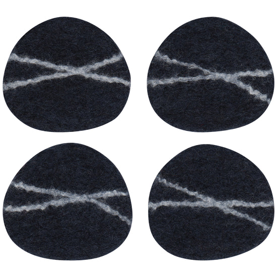 Pebble-shaped and soft, our felted wool Midnight Striato coasters cushion drinks comfortably while adding an artisanal accent to any space. Each piece, handmade in Nepal, is unique.