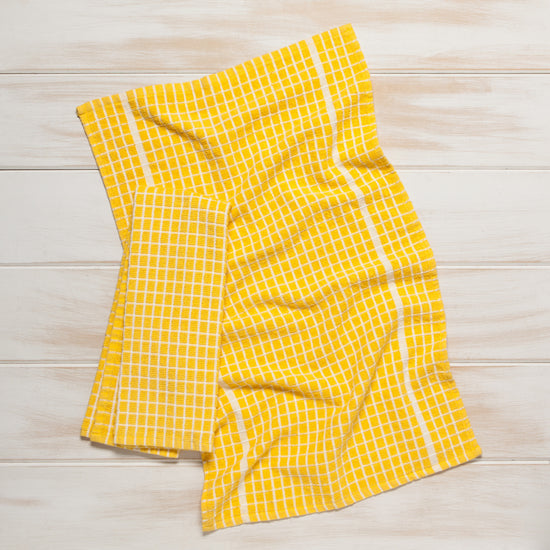 Our terry dishtowels are ultra-absorbent and extra soft. 80% cotton and 20% recycled polyester combines for extra absorbency and durability.