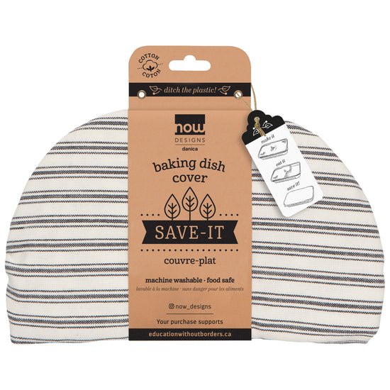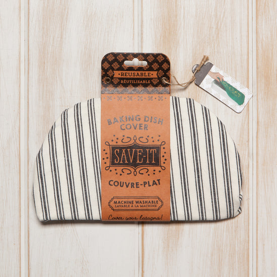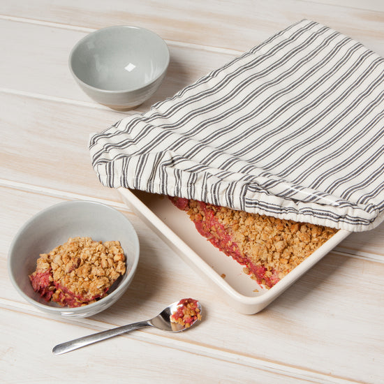 Maximize the traditional glamour of your kitchen with this classic Tick Stripe Baking Dish Cover by Now Designs. This unassuming pattern matches most kitchen decor and adds dapper elegance to your leftovers.