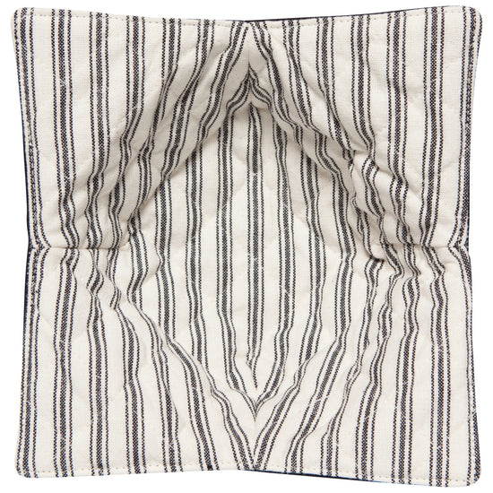 Cradle a warm bowl of morning oatmeal or afternoon soup safely in your hands with this Ticking Stripe quilted bowl cozy.