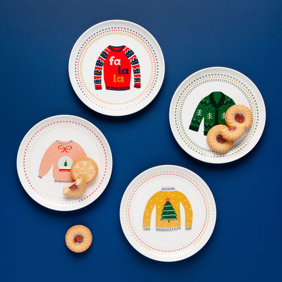 Ugly Christmas Sweater Appetizer Plates Set of 4