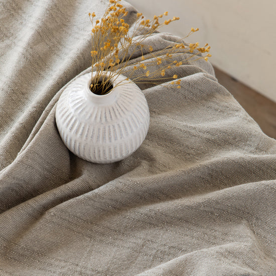 Natural fibers are woven with geometric stripes and patterns, adding texture and subtle visual interest to your table. The understated design of the Villa tablecloth enhances any setting with refined simplicity.