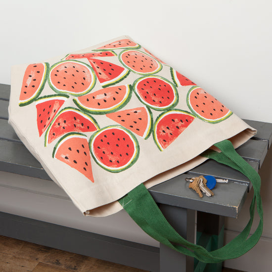 Generous cotton tote bags pack a lot of personality and more. Treasures from the farmer's market, library, or store fit with ease. The reinforced stitching and flat bottom allow for easy packing, and long handles make carrying a breeze.